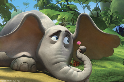 HORTON HEARS A WHO! is the story of an elephant (voiced by Jim Carrey) who finds a speck which is the home of an entire race of Whos. The mayor of Whoville (voiced by Steve Carell) is the only one who can communicate with the elephant. It becomes apparent that the elephant needs to get the Whos to safety.