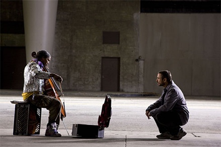 The story is that of a Los Angeles Times Reporter (Downey) befriending a homeless Julliard dropout (Foxx).