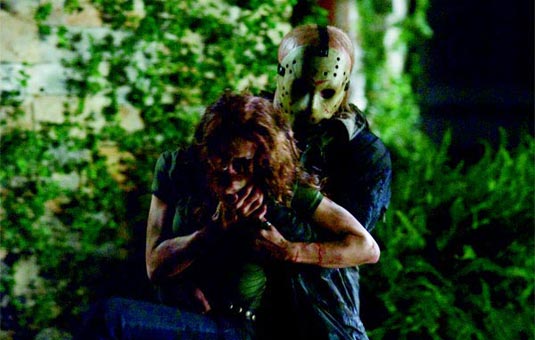 In modern horror fashion, we are asked to side with the killer as much as the heroes. This film tries to attract its slacker fans to Jason by making him a Mama’s boy just trying to protect his weed stash from douchey delinquents. We are supposed to be on his side for more of the scenes then we are his victims. We’re supposed to root for creative death most of the time. To me, that is the problem with today’s horror. It has become more about blood and apathy than suspense. When John Carpenter helped create the formula in HALLOWEEN, those having sex and doing drugs were fairly innocent. They may have been clueless, but they were not malicious and unlikable people we hoped would die. The genre has bastardized the formula into a lazy style which promotes rooting for the bad guy. Now I’m not one of these people saying that this is corrupting today’s youth. I’m not on that train, don’t worry. All I’m saying is that I find a movie much more entertaining when it creates suspense and tries to make us think, rather than take the lazy, non-creative approach.