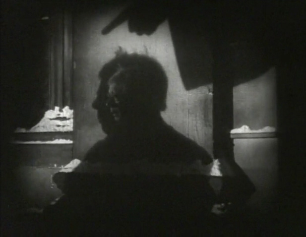 The ghosts of this SCROOGE are unique, sometimes successfully so. Jacob Marley actually is just a voice over. Director Henry Edwards plays off of the book’s observation that only Scrooge can see Marley by extrapolating that out into the movie where even the audience is not able to see him. This creates a weird and less effective sequence in which Scrooge talks to a chair. Next is Ghost of Christmas Past. This is a shapeless void with a voice. We see a silhouette, but no body. This works save for the truncated nature of the past sequences in general. Ghost of Christmas Past is the traditional big guy in a robe with a fat laugh. He is standard, boring, and effective. Ghost of Christmas Future is actually pretty awesome. While he is the usual grim reaper type, we only ever see him in shadow. And inside all of these sequences, Scrooge appears as a small face set inside his own silhouette. It is a cool look.