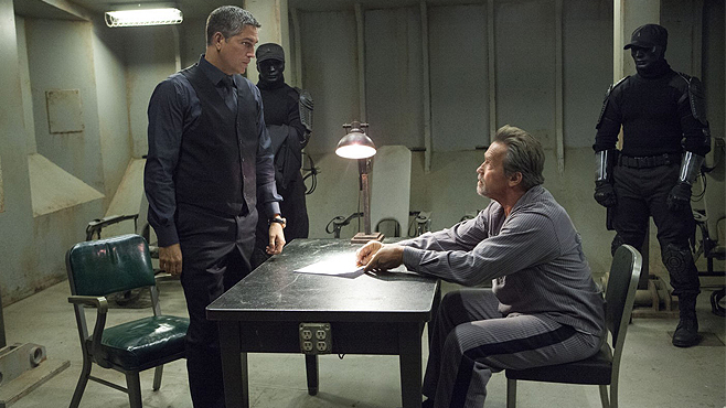 Fortunately Ray soon meets up with Rottmayer (Arnold Schwarzenegger). He is a prisoner who has information Hobbes wants, and so both Ray and Rottmayer use that as leverage to try and plan their escape. In the mix, also, are the woman who got Ray the job (Caitriona Balfe), Ray’s outside business partners (played by 50 Cent and Amy Ryan), a villainous guard (Vinnie Jones), a Muslim prisoner from the opiate trade (Faran Tahir) and a benevolent doctor who may (or may not) be an ally (Sam Neill).