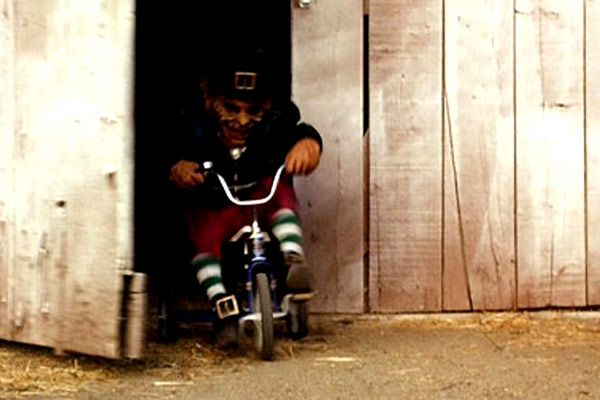 31:11 – The horny Warwick Davis Leprechaun stroking the leg of a young Jennifer Aniston is as creepy as I care to go. Somehow, when the stroking is blamed on a cat, that is less weird. leprechaun-tricycle
